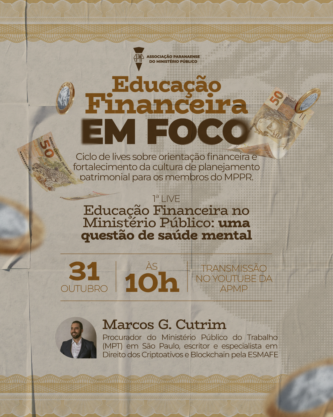 A APMP promove, no dia 31 de outubro (sexta-feira), às 10h, a abertura do projeto “Educação Financeira em Foco”, um ciclo de lives voltado à orientação financeira e ao fortalecimento da cultura de planejamento patrimonial entre os membros do MPPR.