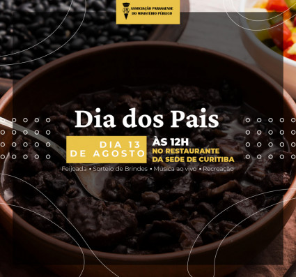 A APMP convida associados, associadas e seus familiares para celebrar juntos o Dia dos Pais na Associação, no dia 13 de agosto, a partir das 12h, no restaurante da sede de Curitiba (Rua Mateus Leme, 2018, andar Térreo). Neste ano, o evento será comemorado em um ambiente todo personalizado, com música ao vivo, decoração temática, sorteio de brindes, recreação para as crianças e com uma Feijoada Especial.
