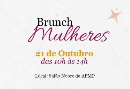 A APMP convida as associadas para o Brunch Mulheres, que ocorrerá no dia 21 de outubro, das 10h às 14h, no salão nobre da sede da APMP Curitiba. Esposas, filhas, mães, irmãs e demais interessadas também podem participar de toda a programação.