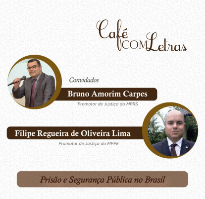 Coloque na agenda, no dia 15 de junho a APMP realizará mais uma edição do Café Com Letras. O tema será “Prisão e Segurança Pública no Brasil”. Os palestrantes serão Bruno Amorim Carpes, promotor de Justiça do Ministério Público do Rio Grande do Sul (MPRS), e Filipe Regueira De Oliveira Lima, o promotor de Justiça do Ministério Público de Pernambuco (MPPE). O evento será exclusivamente on-line e aberto ao público em geral. A transmissão será a partir das 19h, no Youtube da APMP.