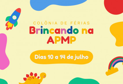O período de férias escolares de julho está chegando e pensando na diversão e bem-estar das crianças, a APMP realizará mais uma vez a colônia de férias “Brincando na APMP “. Assim como ocorreu ano passado, a Associação promoverá uma semana inteira de muita alegria e diversão para os pequenos. Coloque na agenda, a colônia será de 10 a 14 de julho, das 13h às 18h, na sede de Curitiba.