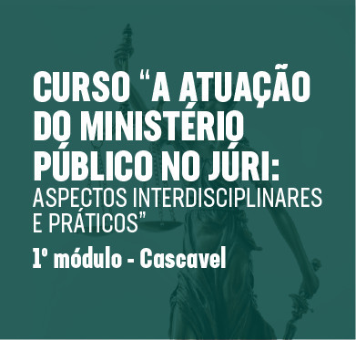 • Com o apoio da Associação Paranaense do Ministério Público, a Escola Superior do Ministério Público do Paraná, em parceria com as 5ª e 16ª Promotorias de Justiça da Comarca de Cascavel, a Promotoria do Júri de Curitiba e o programa Pró-Vítima, realizará, nos meses de abril e maio, o curso “A atuação do Ministério Público no Júri: aspectos interdisciplinares e práticos”, na região oeste do estado.