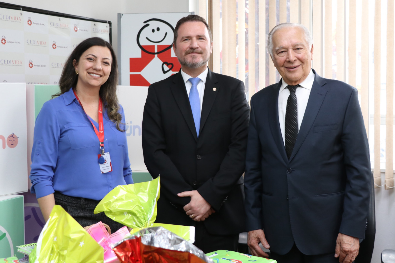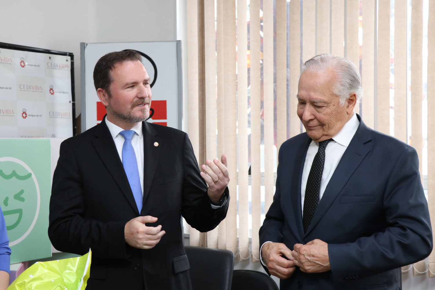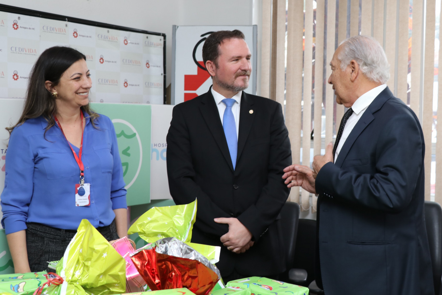 O Presidente da APMP, Fernando da Silva Mattos, foi recebido pelo Presidente dos Amigos do HC, Domingos Tarço Murta Ramalho, e pela Superintendente Caroline Celucio Precoma Dergham, que agradeceram a parceria e destacaram a importância do gesto solidário.