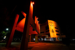Sede de Curitiba está iluminada em laranja para apoiar o fim da violência de gênero