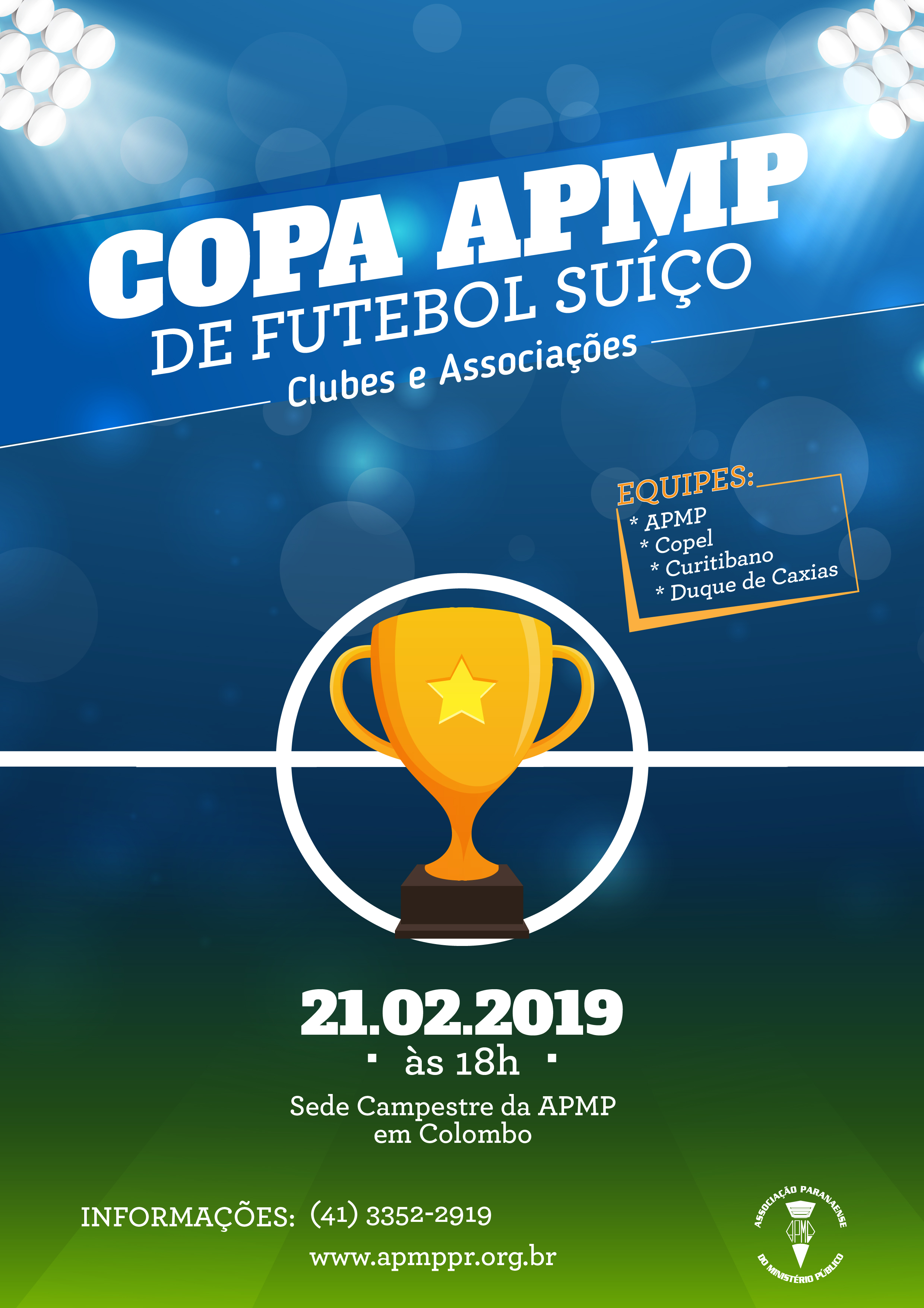 A APMP, por meio da Diretoria de Esportes, promoverá a 1ª COPA APMP de Futebol Suíço - Clubes e Associações. O torneio ocorrerá no dia 21 de fevereiro, a partir das 18h, na sede Campestre da APMP, em Colombo.