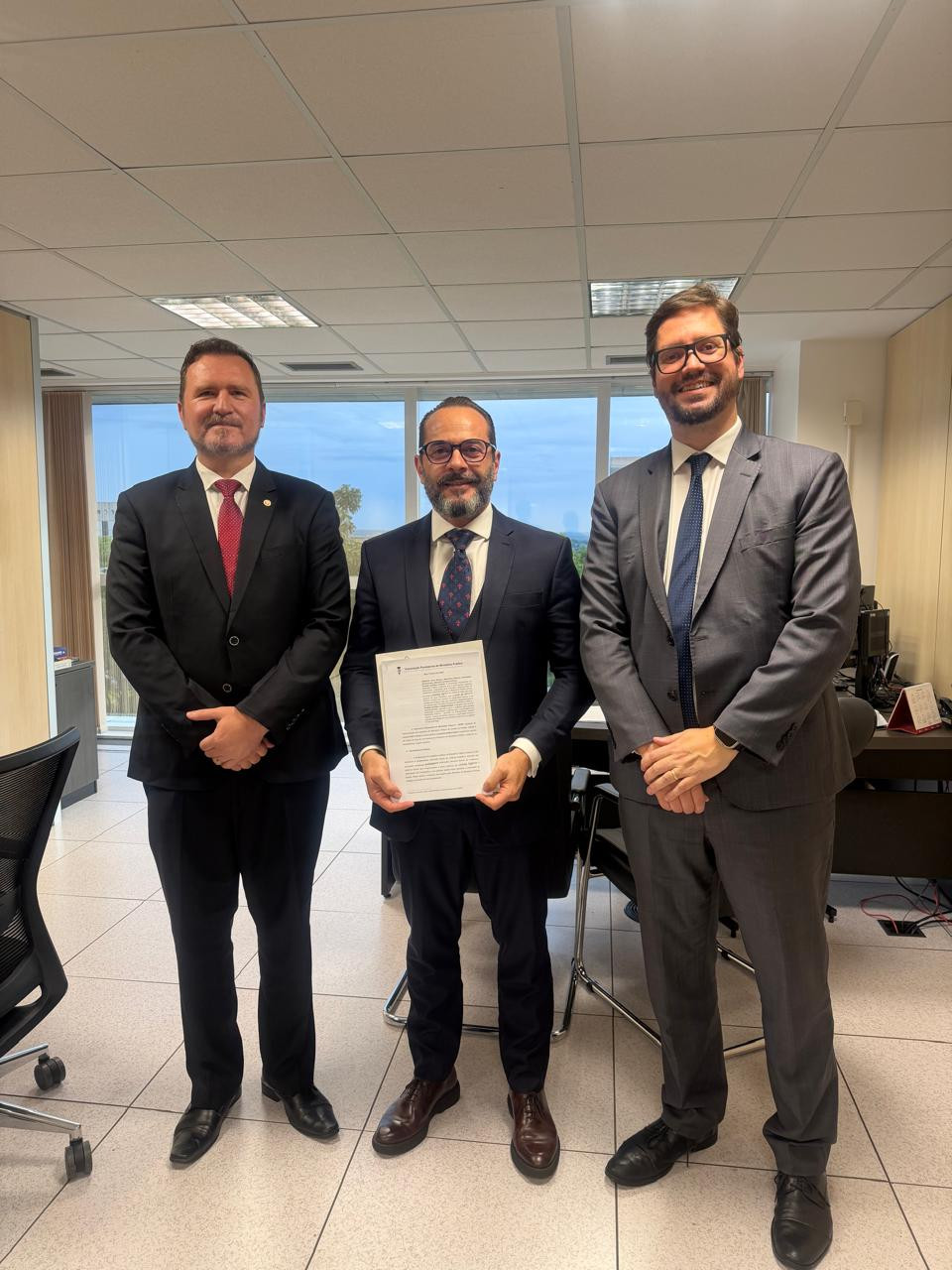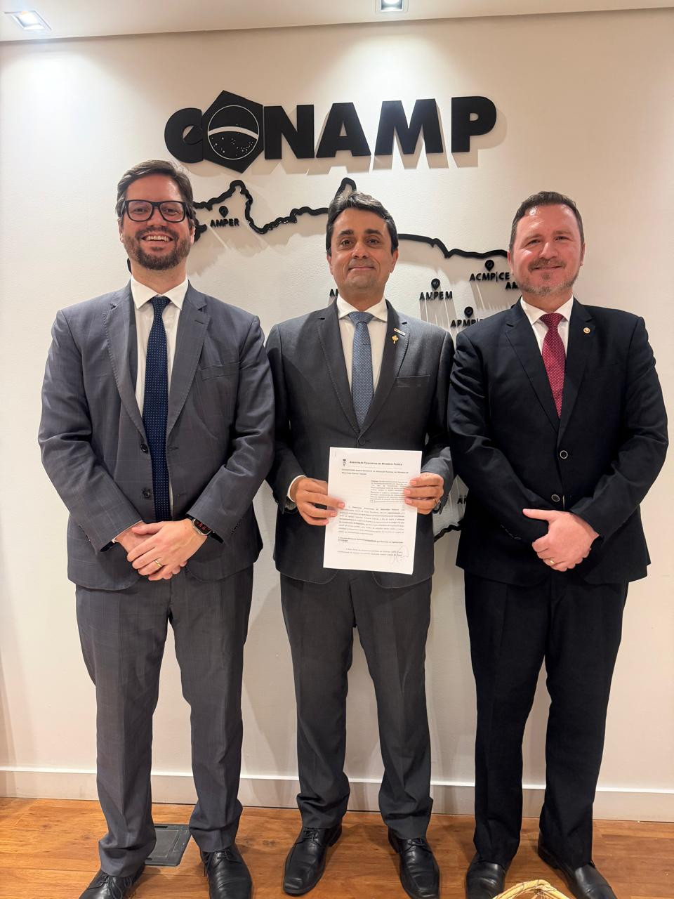 Após a sessão, os integrantes da diretoria reuniram-se com o Conselheiro do CNMP Fernando da Silva Comin, oportunidade em que foram apresentadas e entregues duas notas técnicas recentemente elaboradas pela entidade.