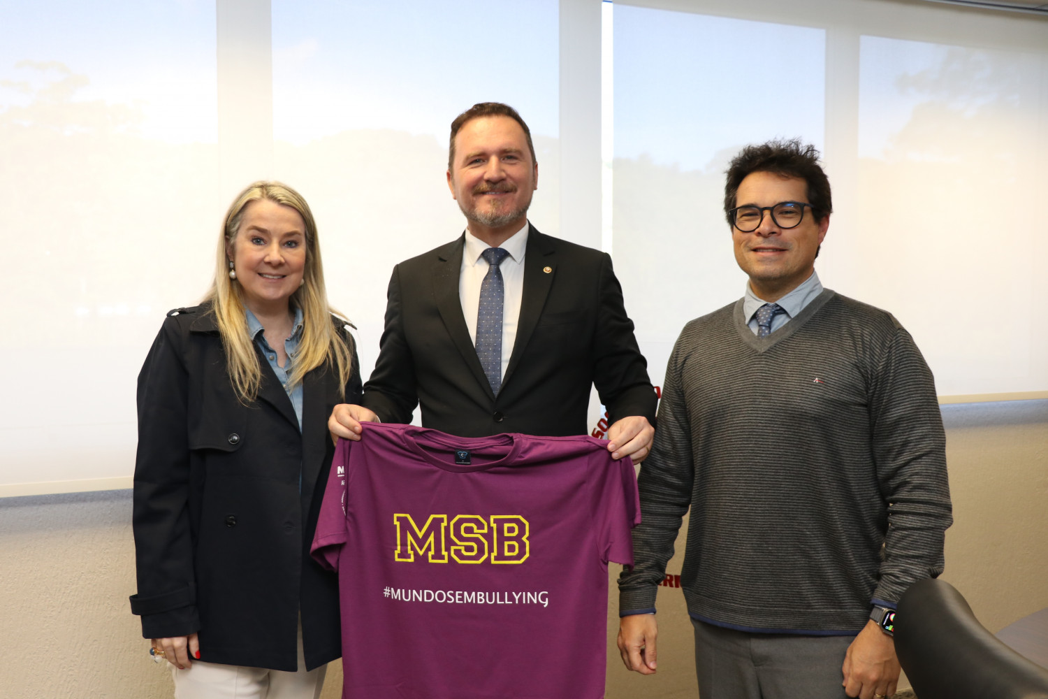 O Presidente da Associação Paranaense do Ministério Público (APMP), Fernando da Silva Mattos, recebeu, na última quinta-feira (23), o Diretor de Convênios da APMP, David Kerber de Aguiar, e a Promotora de Justiça Beatriz Spindler de Oliveira Leite, para a apresentação da Ação de Conscientização contra o Bullying nas Escolas – Campanha #MundoSemBullying.