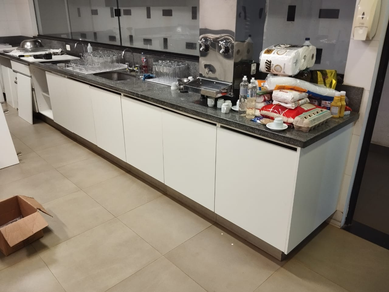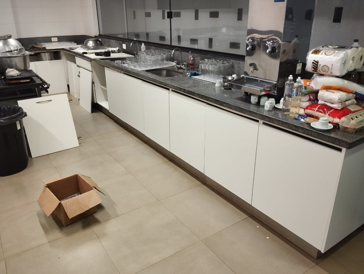 Entre as intervenções executadas, destaca-se a reforma completa dos armários da cozinha do salão gourmet, que proporcionou maior organização, praticidade e melhores condições de uso do local para eventos e encontros associativos.