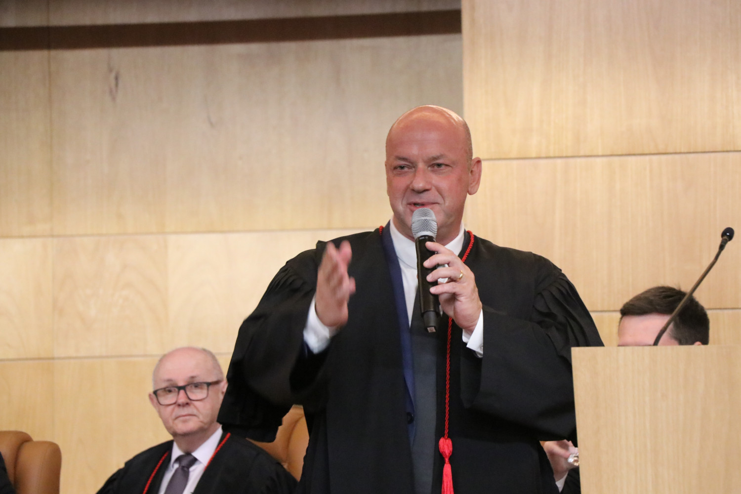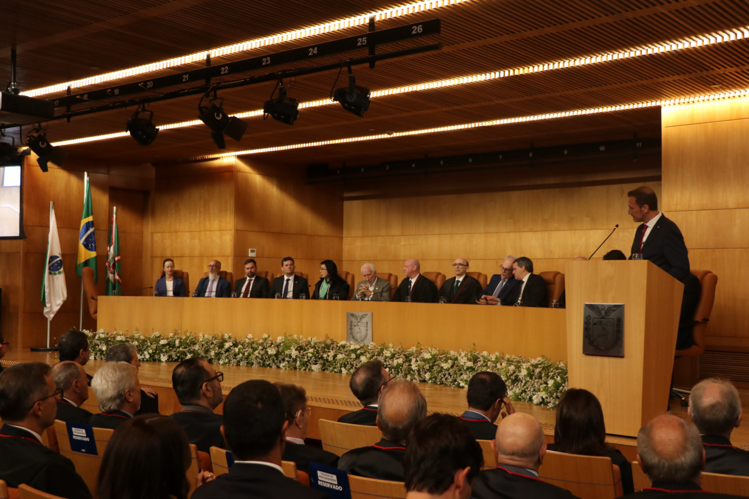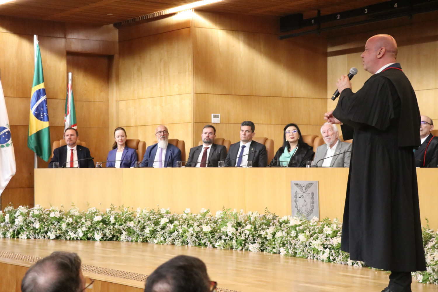 Durante o ato, o Presidente da APMP integrou a mesa de autoridades e fez uso da palavra. Também participaram da composição o Vice-Governador do Paraná, Darci Piana, o Presidente da Associação Nacional dos Membros do Ministério Público (CONAMP), Tarcísio José Bonfim; o Procurador-Geral de Justiça do Rio Grande do Sul, representando o Conselho Nacional dos Procuradores-Gerais de Justiça dos Estados e da União, Alexandre Saltz; o Conselheiro do Conselho Nacional do Ministério Público (CNMP), Alexandre Magno de Lacerda; o Senador Sérgio Moro; e a Presidente do Tribunal de Justiça do Paraná, Lidia Maejima; além do ex-Procurador-Geral de Justiça e decano do MPPR, Milton Riquelme de Macedo; o Conselheiro do Tribunal de Contas do Paraná, Fernando Augusto Guimarães; o Corregedor-Geral do MPPR, Ney Roberto Zanlorenzi; a Presidente em exercício da OAB Paraná, Graciela Iurk Marins; o Defensor Público-Geral do Paraná, Matheus Cavalcanti Munhoz; e o Presidente do Tribunal Regional Eleitoral do Paraná, Luciano Carrasco Falavinha Souza.