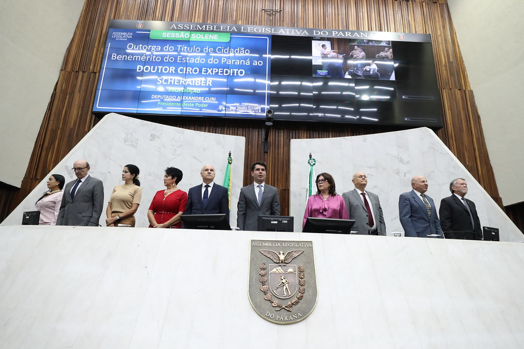 A homenagem, proposta pelo presidente da Alep, deputado Alexandre Curi, reconhece mais de quatro décadas de atuação de Scheraiber no Ministério Público do Paraná, com destaque para sua contribuição pioneira na defesa dos direitos do consumidor. O projeto que concedeu a honraria foi aprovado por unanimidade e sancionado pelo governador Carlos Massa Ratinho Júnior, por meio da Lei 22.664/2025.