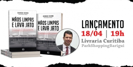 O associado Rodrigo Regnier Chemim Guimarães, procurador de Justiça, lançará nesta terça-feira, 18 de abril, o livro “Mãos limpas e Lava Jato – A corrupção se olha no espelho”. O lançamento ocorrerá às 19h, na Livrarias Curitiba do ParkShopping Barigui, em Curitiba.