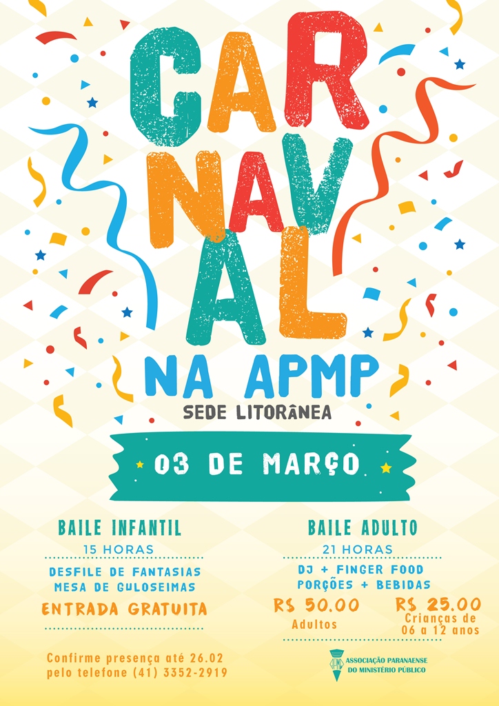 A animação do domingo de Carnaval já está garantida na sede Litorânea da APMP, em Matinhos. A Associação realizará no dia 03 de março os bailes infantil e adulto para os associados, dependentes e convidados. Os eventos prometem agitar e proporcionar momentos de alegria e descontração entre os participantes.