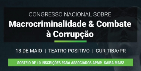 O Congresso Nacional sobre Macrocriminalidade e Combate à Corrupção ocorrerá no dia 13 de maio de 2019, no Teatro Positivo, e contará com diversos palestrantes que tratam atualmente sobre o tema no Brasil. O evento é uma promoção da Escola de Magistratura Federal do Paraná (ESMAFE-PR), em conjunto com a Associação Paranaense dos Juízes Federais (Apajufe).