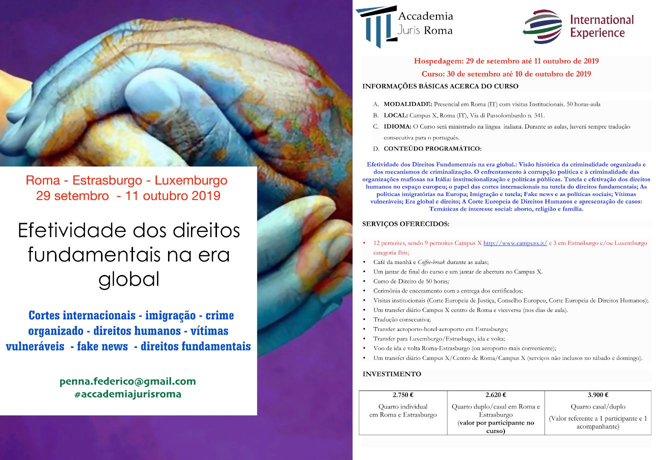 Curso "Efetividade dos direitos fundamentais na era global", em Roma, está com inscrições abertas