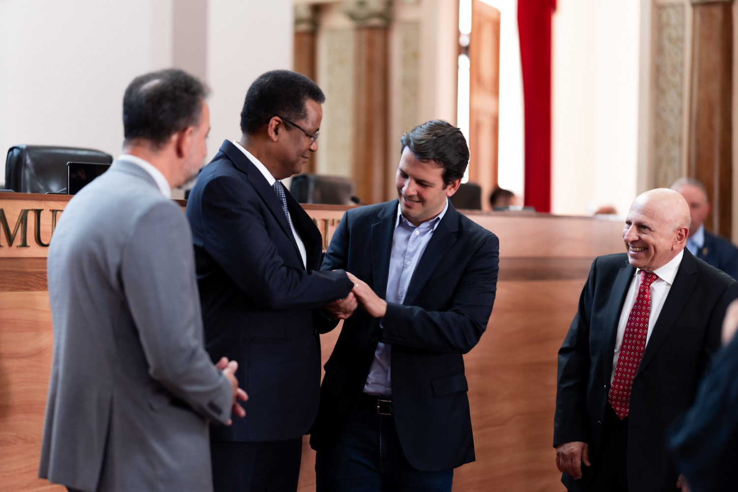 A solenidade foi conduzida pelo Vereador Nori Seto, com o apoio do Vereador Marcos Vieira, autor da homenagem. Estiveram presentes o Prefeito Eduardo Pimentel, o Desembargador do Tribunal de Justiça do Paraná José Camacho Santos, os Procuradores de Justiça Olympio de Sá Sotto Maior Neto, Ivonei Sfoggia, Gilberto Giacoia e Milton Riquelme de Macedo, e a Promotora de Justiça Mariana Seifert Bazzo.