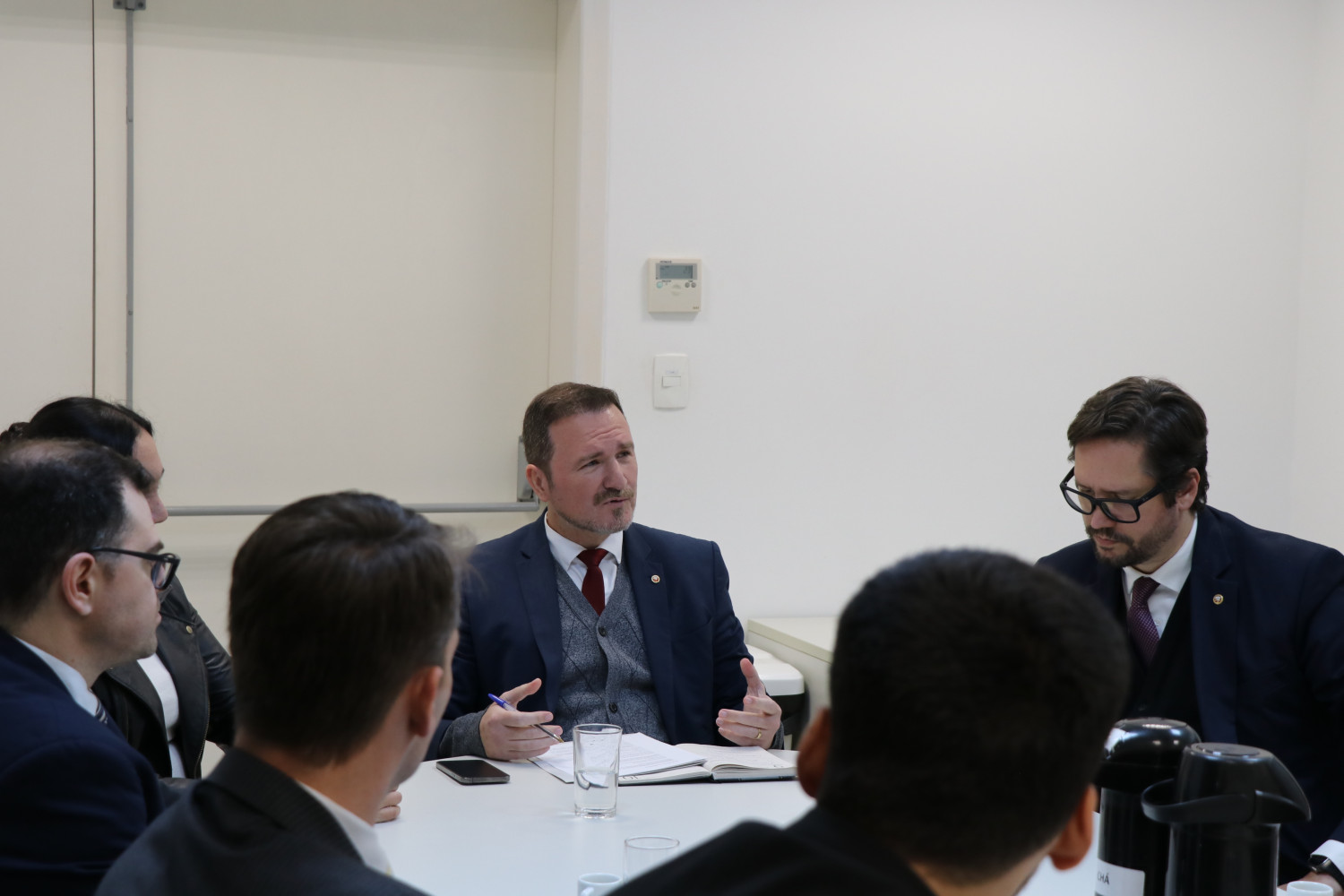 Durante o encontro, o Presidente Fernando da Silva Mattos e o 1º Vice-Presidente, Rodrigo leite Ferreira Cabral, apresentaram as principais frentes de trabalho da atual gestão, destacando ações em defesa das prerrogativas, acompanhamento legislativo de propostas que impactam a carreira e temas institucionais de interesse da classe.