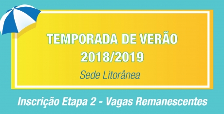 Inscrições abertas para Etapa 2 da Temporada de Verão 2018/2019 - Vagas remanescentes