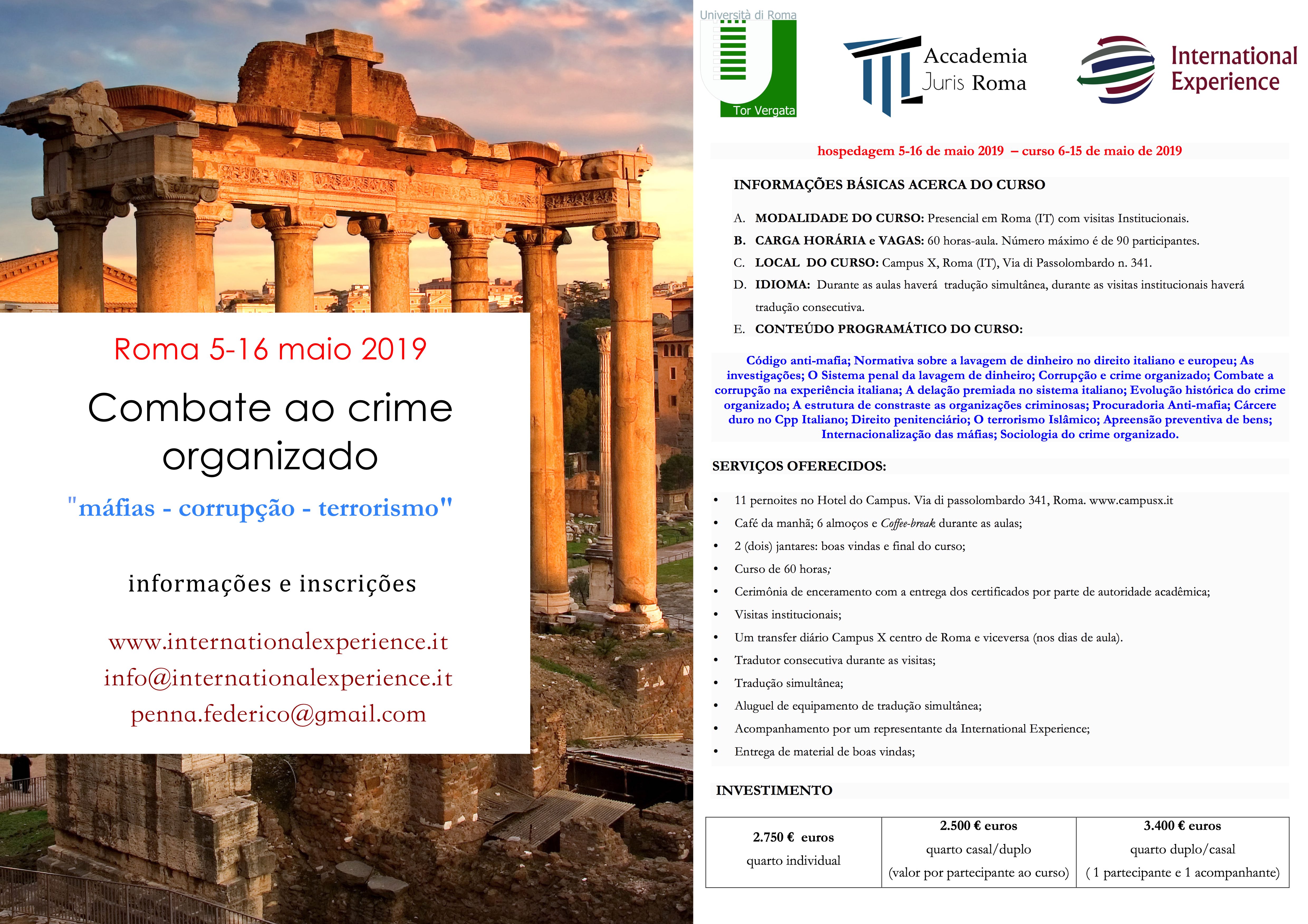 A APMP informa que as inscrições para a VI edição do curso “Combate ao Crime Organizado - Máfias, corrupção e terrorismo” se encerram nesta sexta-feira, 28 de setembro. O curso ocorrerá de 05 a 16 de maio de 2019, em Roma-Itália.