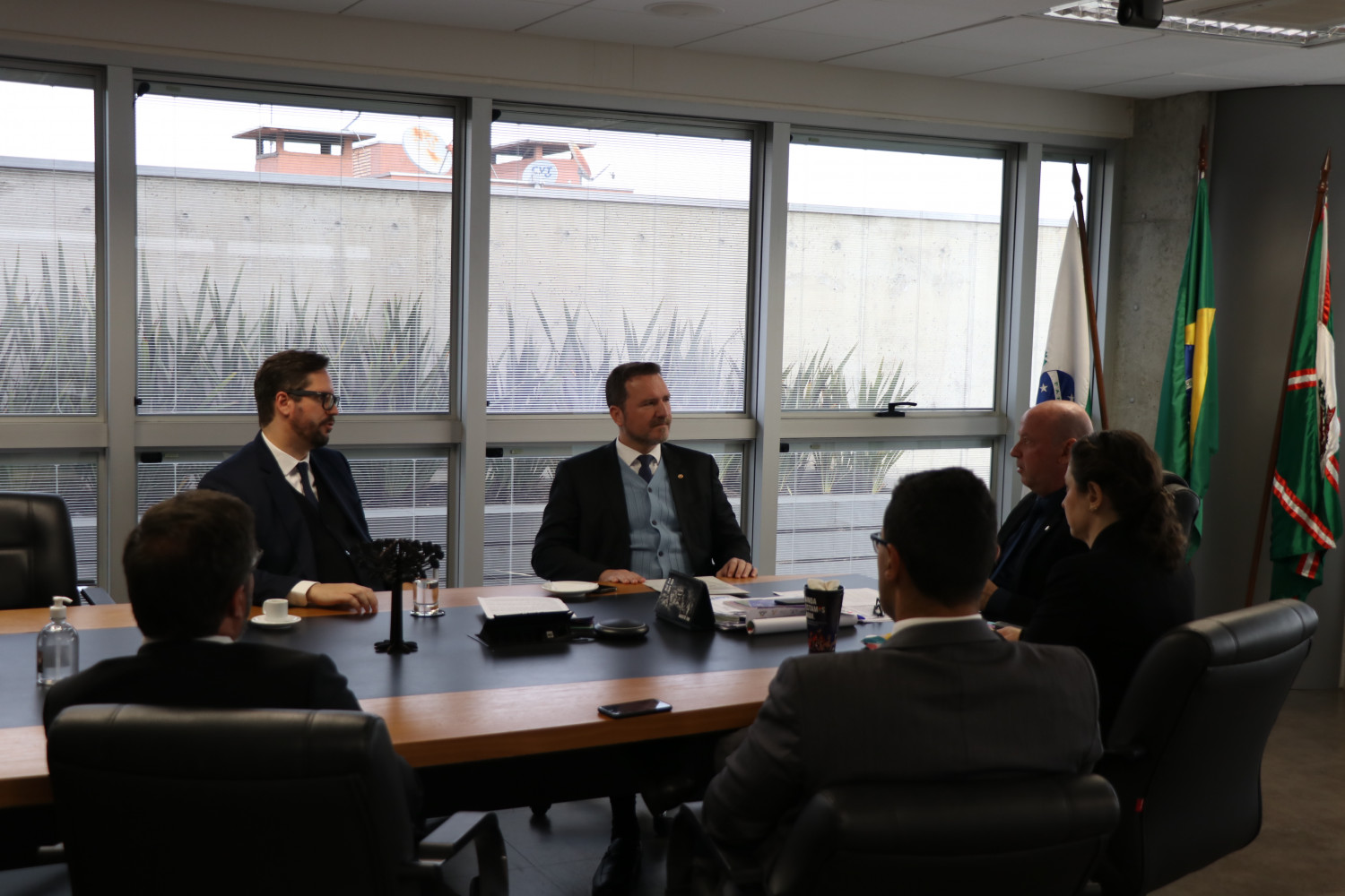 Participaram da reunião a Diretora Secretária da PGJ, Nayani Kelly Garcia, o Promotor Adjunto da Subprocuradoria-Geral de Justiça para Assuntos Administrativos, Cláudio Franco Felix, e o Coordenador de Assuntos Institucionais, Ronaldo de Paula Mion.